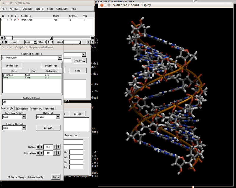 $ vmd -parm7 dna-nowater.prmtop -netcdf md-nowater.nc