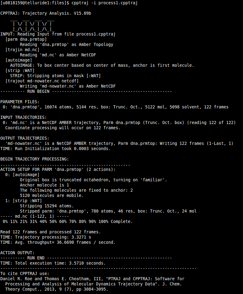 parm dna.prmtop trajin md.nc autoimage strip :WAT trajout md-nowater.nc netcdf |